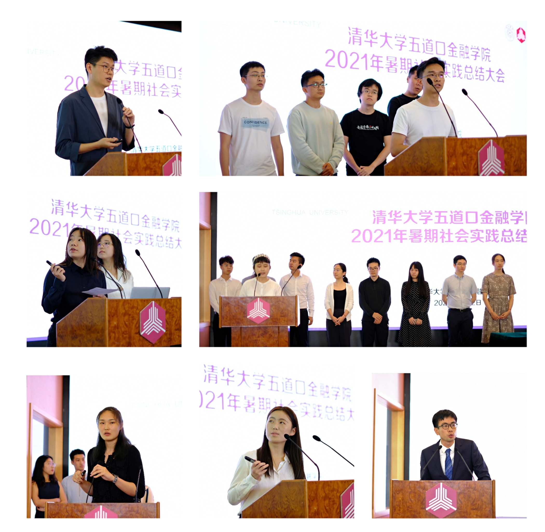 而后,7支实践支队分别结合实践经历、取得成果亮点及感悟做展示。实践形式丰富多彩,包括访谈当地政府部门、金融机构,采访老党员、企业家,参观当地特色企业以及深入走访农户,组织中小学分享会,举办搬迁社区金融反诈宣讲等。实践活动既涉及金融专业相关的普惠金融、绿色金融、数字经济等课题,也探讨了与国家发展紧密相连的国内国际双循环、乡村振兴、基层治理等议题。