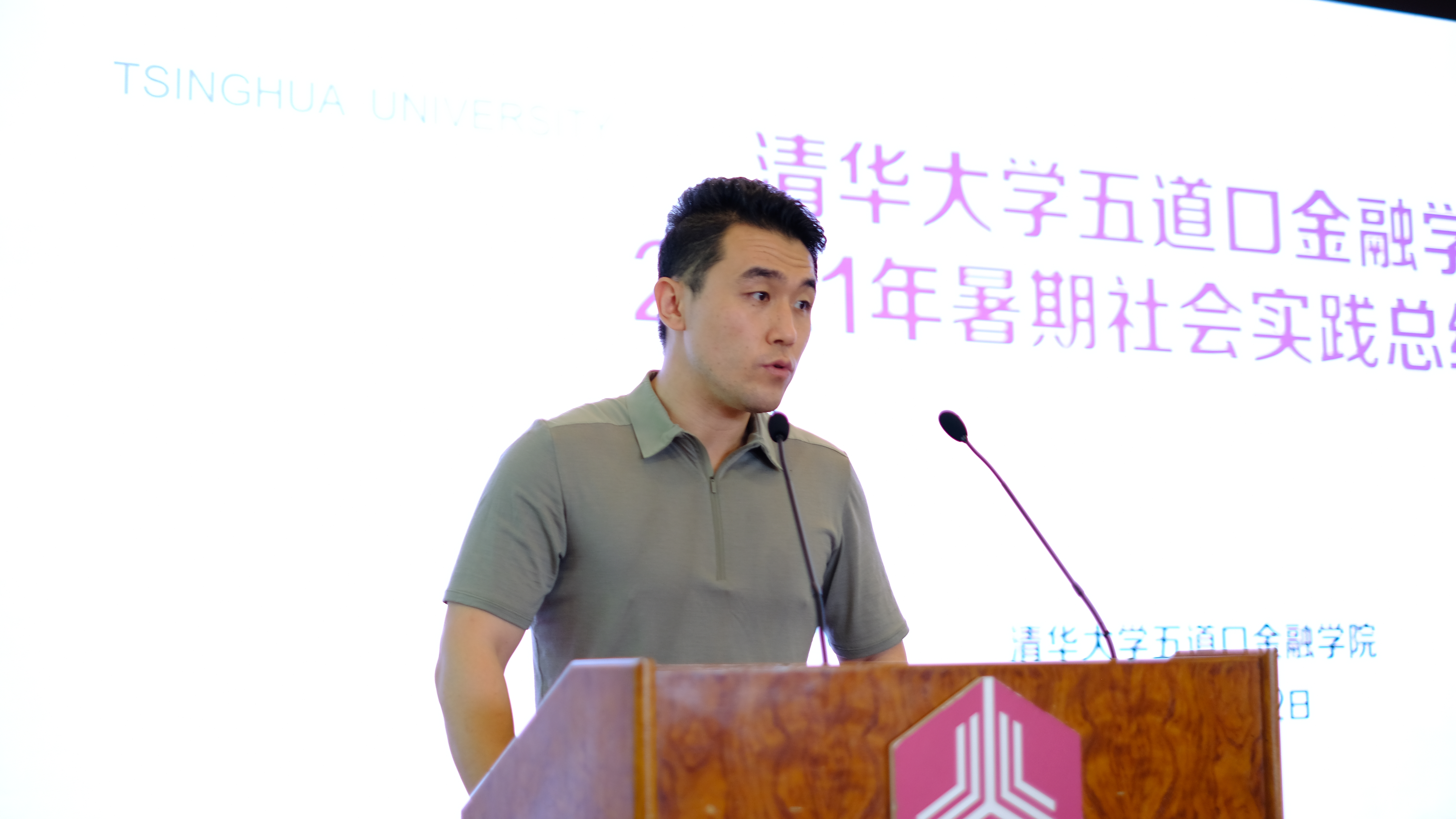 金雨浩代表校研团委作开场致辞。他表示,五道口金融学院组织7支实践支队分赴云南、福建、甘肃等地开展深入细致、富有成效的实践工作,工作模式值得推广。
