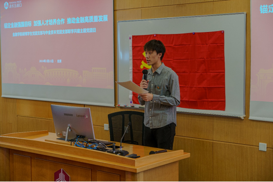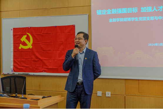金博22党团支部、金硕23级党团支部与中金资本党团支部举行“锚定金融强国目标 加强人才培养合作 推动金融高质量发展”联学共建主题党团日活动。学院副教授、党委研工组组长、学生办主任刘悦老师,学院学生办副主任刘婧老师,中金资本党总支副书记、第五党支部书记、董事总经理马荣宝等出席本次活动。活动由学院党建助理、22级博士生石家豪主持。