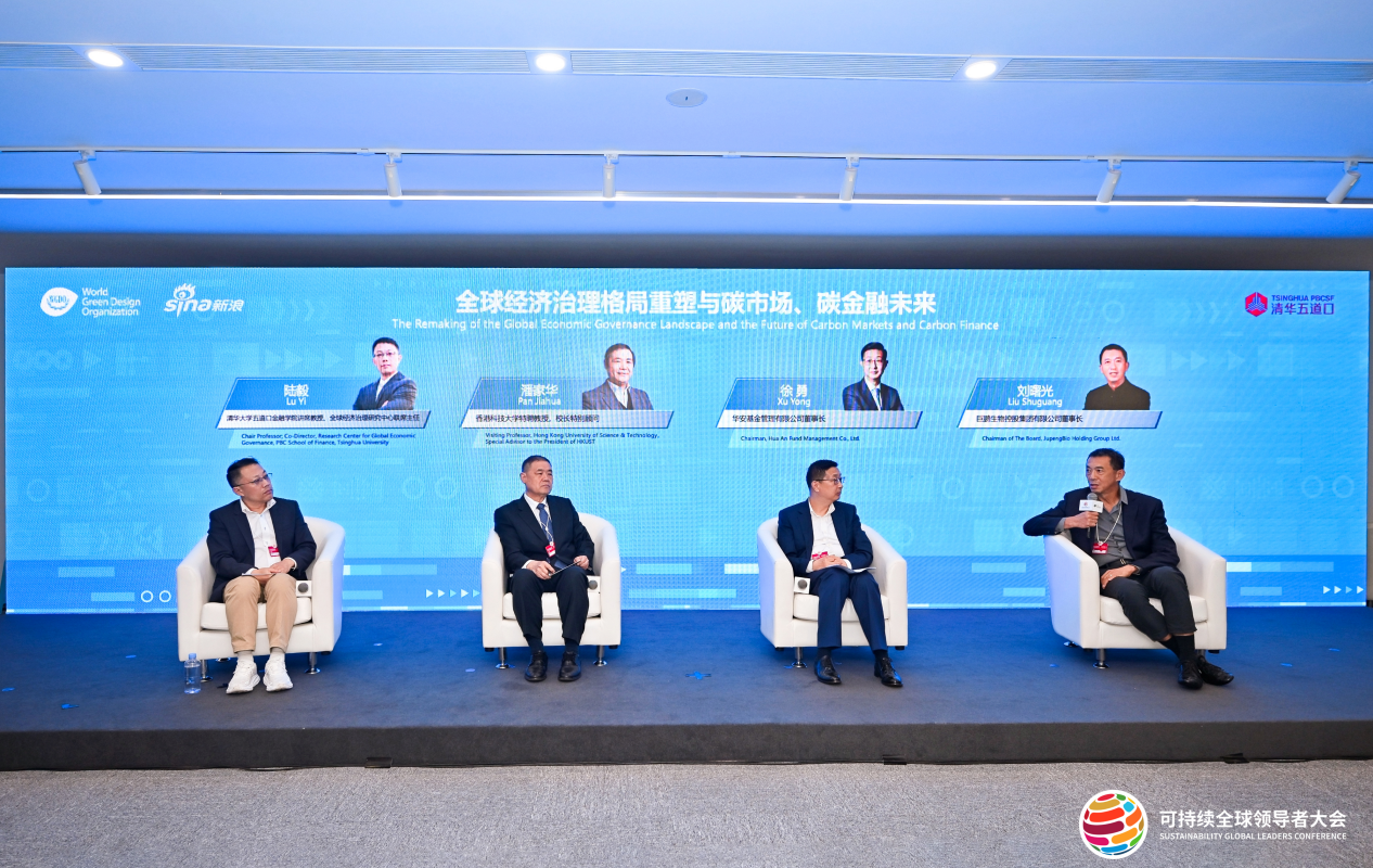 香港科技大学特聘教授、校长特别顾问潘家华,华安基金管理有限公司董事长徐勇,巨鹏生物控股集团有限公司董事长刘曙光三位嘉宾进行了主题对话,从多维度剖析碳金融与绿色创新的互动关系,为碳资产优化与行业未来发展建言献策。