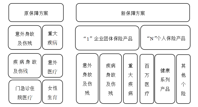 经过调整后的“1+N”模式与市场上的常有的原保障方案对比如下图所示: