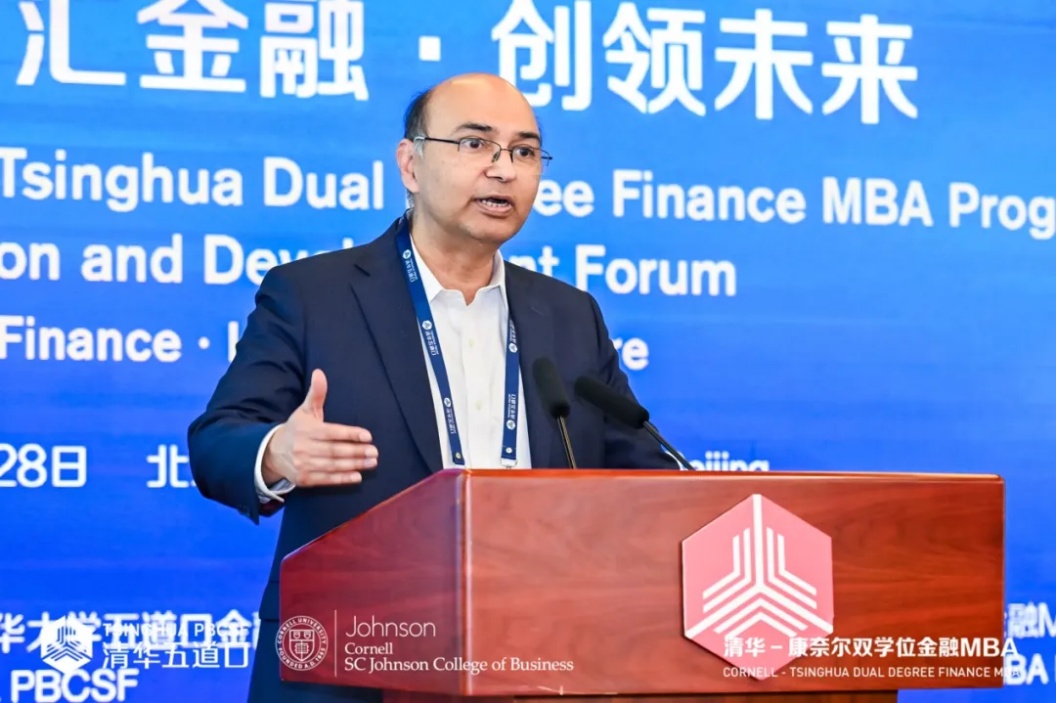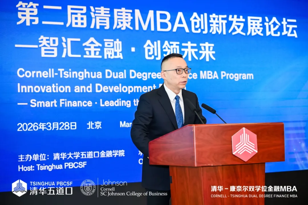 院长焦捷代表学院致辞,对康奈尔大学约翰逊管理学院院长Vishal Gaur 及各位嘉宾表示欢迎与感谢。他指出,学院勇担国家金融改革与人才培养使命,传承“不怕苦,敢为先,讲团结,重贡献”的精神,以“更专业、更科技、更国际、更人文、最清华”为方向,建设世界顶尖金融学院。自2014年清康双学位金融MBA项目创办以来,项目连续7年位居中国商学院金融MBA榜首,成为中美教育合作典范。未来学院将继续与康奈尔大学深化合作,汇聚全球智慧,培养国际化金融领军人才,为金融创新与中美人文交流贡献力量。