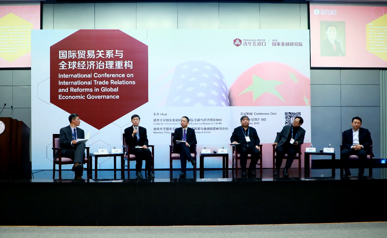 嘉宾讨论环节中,国际经贸领域的学者专家以“国际贸易摩擦和全球经济治理重构”为主题发言并进行交叉讨论。