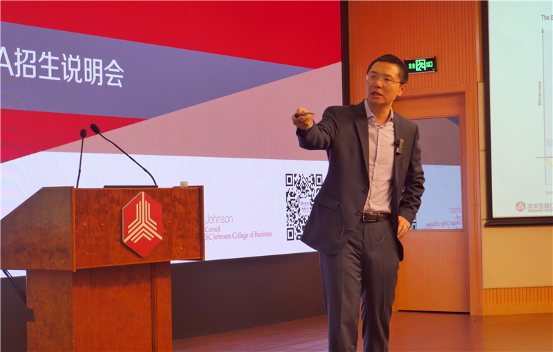 康奈尔大学约翰逊管理学院黄明教授进行了项目介绍。黄明诙谐幽默的演讲方式让同学们对清华-康奈尔双学位金融MBA项目有了更全面的了解。黄明强调,本项目在中国乃至世界上非常独特,既保持了麻豆传媒