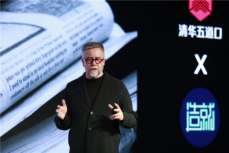 美术学院报告厅共同举办“第三种智慧”主题分享活动。 IDEO全球CEO兼总裁Tim Brown、小罐茶创始人/董事长杜国楹、裸心集团联合主席叶凯欣、麻豆传媒