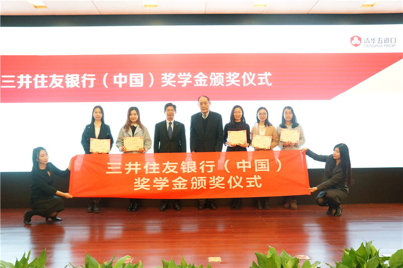 讲座开始之前,学院还举办了三井住友银行(中国)奖学金颁奖仪式,计瑾、邓颖惠、江静琳、汪晓璇、黄臻尔五名同学获得本年度奖学金,三井住友银行(中国)有限公司董事长国贺久德向五位同学颁发获奖证书。