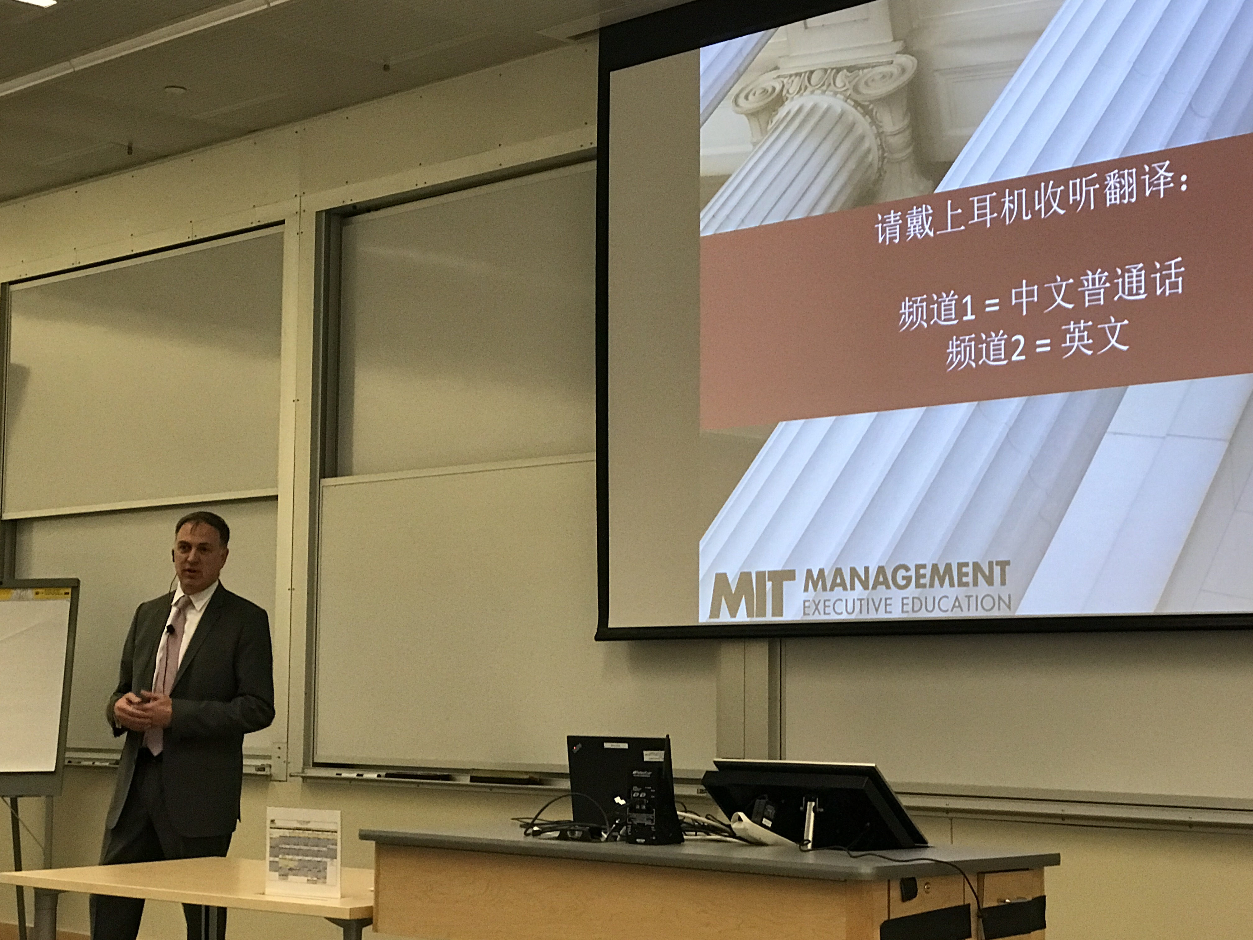 图为:麻省理工大学斯隆管理学院高管教育副院长皮特·赫斯特正在介绍课程安排
