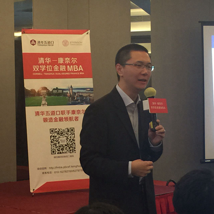 在香港说明会上,与来宾进行分享的是首期班即将毕业的Derek同学。Derek三年前转入大陆发展,本项目浓厚的学术氛围不仅为面临职业转型期的他提供了职业发展所需的知识储备,来自各行各业的精英同学更让他在短期内迅速接触到国内很多细分行业的领军人物。清华-康奈尔双学位金融MBA的平台,成为了Derek大陆事业的起点。