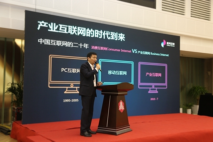 傅淼以“产业互联网时代的创业与投资逻辑”为题,与现场的创业者们进行了分享。傅淼表示,目前中国已经经历了包括PC互联网和移动互联网两个阶段的整个二十年的消费互联网时代,但产业互联网时代才刚刚开始。