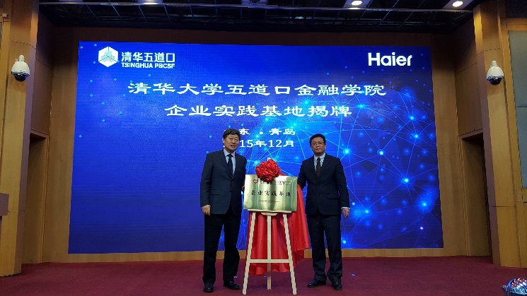 —海尔集团战略合作签约暨产业金融论坛在青岛海尔集团总部举办,双方不仅签署了战略合作协议,五道口金融学院企业实践基地也在海尔落地。五道口金融学院常务副院长廖理,党委副书记、副院长赵岑,院长助理袁源,战略合作与发展办公室主任高皓,以及海尔集团董事局主席、首席执行官张瑞敏,轮值总裁周云杰,高级副总裁、CFO谭丽霞,海尔大学执行校长孙中元等双方代表出席活动。