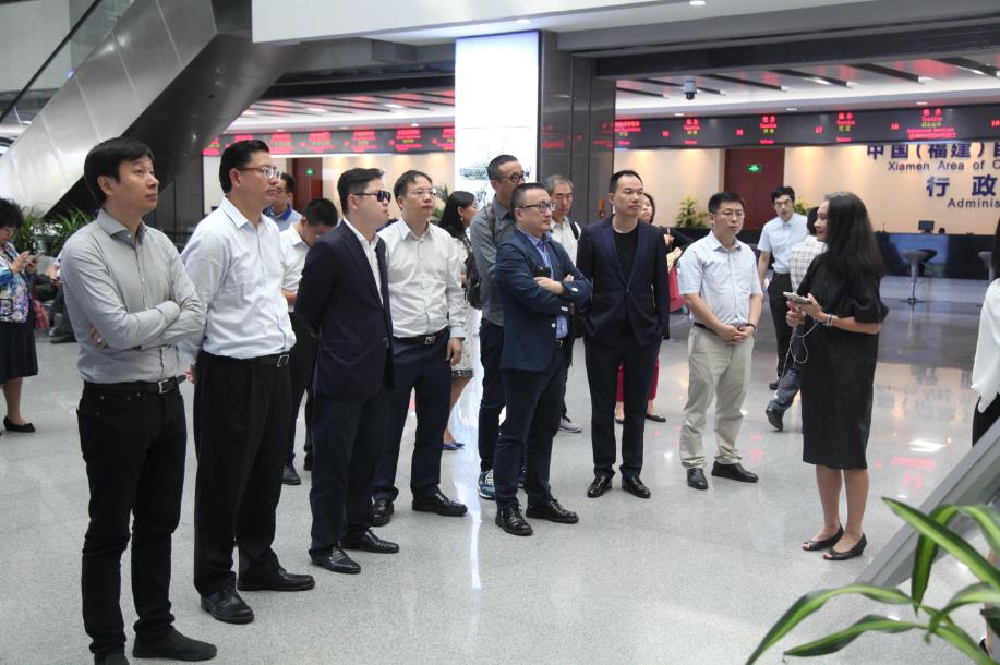 在福建自贸试验区的参访中,同学们了解了自贸区的创新制度和简政放权实践经验,并参观了自贸区进口商品展示中心。厦门市副市长、自贸区管委会主任倪超和厦门海沧保税港管委会副主任陈敏分别介绍了厦门市发展的整体思路,以及自贸区在投资营税便利化、营商环境法治化建设和两岸交流等方面的创新举措。厦门金圆集团董事长许晓曦还介绍了金圆集团作为两岸金融中心建设开发的全新平台,在金融业务架构建设和自贸区金融改革过程中的创新实践。已在厦门自贸区落户的鑫桥联合融资租赁有限公司董事局副主席兼总裁施锦珊代表首期班同学表示厦门自贸区物流、金融、高端制造和服务等行业投资条件成熟,希望能在厦门乃至福建全省深入开展投资合作。