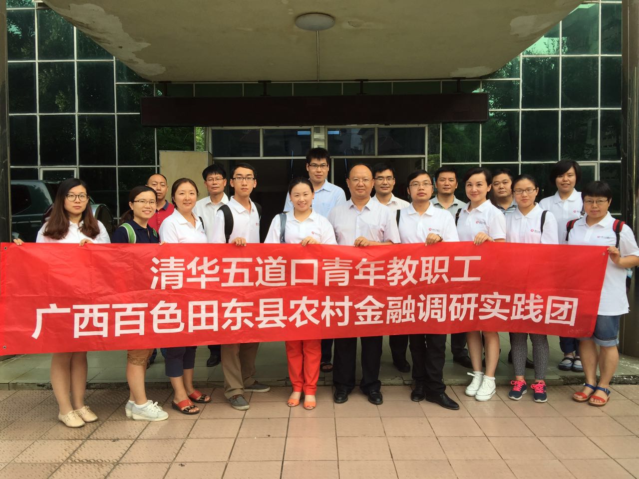 青年教职工农村金融调研实践团”,赶赴广西百色市田东县进行农村金融改革工作实地考察调研。位于革命老区广西百色的田东县是著名的芒果之乡,也是我国深化农村金融体制改革的试验区和一面旗帜。此次调研通过参观农村金融改革成果展、实地走访金融服务示范点、与县委及相关金融机构领导座谈等方式,深入了解了田东县农村金融改革整体思路、信用体系建设的应用情况以及产权改革下的创新扶贫工作,为田东县金融改革的继续深化贡献五道口的专业力量,也为学院进一步开展农村金融改革研究提供了第一手材料。