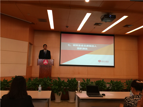 在随后召开的正式会议上,校研究生会副主席张铭宇对第三届研究生会所取得的成果给予了充分的肯定,特别提出了学院举办的学术沙龙、博士生论坛等学术活动在全校范围内起到了示范作用。学院第三届研究生会主席初众代表第三届研究生会做工作报告,她全方位地阐述了研究生会在制度建设、文体活动、学术活动等方面取得的成果,参会同学全票通过了工作报告。主席候选人卜嘉锋精彩的个人演讲将大会的气氛推上高潮。在3分钟的演讲中,卜嘉锋介绍了自己的特长、工作经验、以及对研究生会未来工作的展望,赢得了同学们的阵阵掌声。最终,卜嘉锋以66票赞成票当选为五道口金融学院第四届研究生会主席。他表示必将以更加积极的态度投入到研究生会工作当中,全心全意为同学服务,带领新一届研究生会为学院的发展做出更大的贡献。