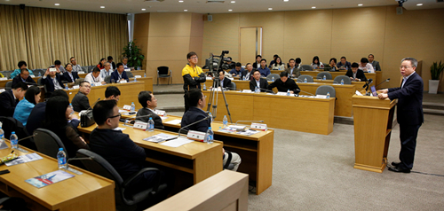 沈晓明博士用翔实的数据向GFD首期班学生介绍了浦东开发开放25年来取得的成就。他认为,25年来,浦东不仅建成了一流的发展硬环境,更重要的是初步形成了与国际惯例接轨的发展软环境。在谈到浦东未来吸引投资的方向时,沈晓明强调,下一步,浦东要培育和吸引民营创新企业和民营龙头企业。而吸引这些企业,靠的一定不是新的政策,而是要为他们创造更好的发展环境和发展机会。