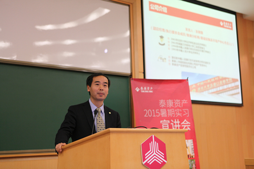 在宣讲会环节,泰康资产的董事总经理、首席分析师、基础设施及不动产投资中心负责人、五道口校友张敬国介绍了泰康资管的基本情况。