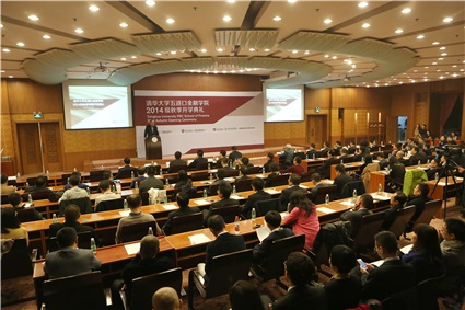 主楼为2014年秋季入学的金融EMBA、全球金融GFD、金融媒体奖学金培训三个项目联合举办开学典礼,三个项目新生代表约180人参加活动。学院院长吴晓灵、常务副院长廖理、副院长康以同、党委副书记赵岑及学院在京其他院领导、项目负责人、校友代表出席了典礼。
