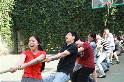 此次趣味运动会共分气球接力、二人踢足球、五人六足接力赛、踩气球以及道口大拔河五个项目。现场观众们摇旗呐喊、锣鼓助威,动感的音乐激发了健儿们奋勇拼搏的斗志。在“气球接力”、“二人踢足球”和“五人六足”这三项考验队友默契的项目中,师生们紧密配合,全力争先。比赛的同时,大家也不忘彼此照顾,发扬 “友谊第一、比赛第二”的精神,赛出水平,赛出气度。在传统集体项目“道口大拔河”中,师生们齐心协力,双方拉拉队热情高涨,加油声、呐喊声此起彼伏,将本次运动会的气氛推向高潮。经过三轮的激烈鏖战,2013级硕士队最终胜出。