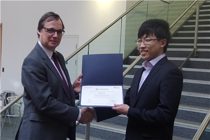 院长John Board 为冬令营学员逐一颁发结业证书。他表示欣赏金融学院学员在专业方面的杰出表现,并期待未来更多同学能够来英参加国际交流项目。2013级研究生徐博文代表冬令营学员向亨利商学院所有授课教师及工作人员致谢,并深情回顾了学员们在英国度过的快乐而充实的两周时光。