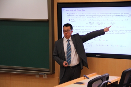在研讨会上,杨春宇和大家分享了自己与几位学者共同研究的论文“Why Does Junior Put All His Eggs in One Basket? A Potential Rational Explanation for Holding Concentrated Portfolios (为什么年轻人把所有鸡蛋放在一个篮子里?非多元化投资组合的理性模型)”。现有文献一般认为年轻投资者以及家庭财产较少的投资者持有过分集中的投资组合是非理性行为,但杨春宇持有不同的观点,他通过展示所构建理性的金融模型,解释了这种看似非理性的投资行为。杨春宇认为当面临投资约束时,具有稳定收入的低财产投资者会在完全理性的前提下选择持有集中于少数几个金融产品的非多元化的投资组合。