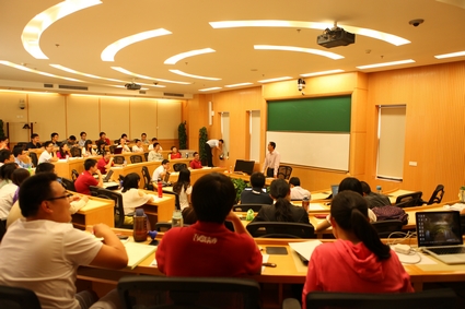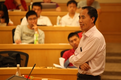 图为王兆星讲授《银行监管与商业银行经营管理》