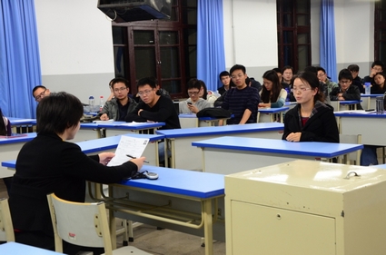 图为无领导群体面试模拟现场
