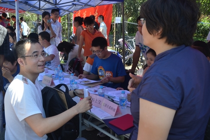 2010级、2011级部分在校生作为工作人员,参与了学院今年的迎新工作。早上6点,他们就开始忙碌地布置场地,准备报到所需物资。早上7点,新生报到正式开始,工作人员热情地引导新生进行注册登记、办理IC卡、党团关系转接等各项报到手续。