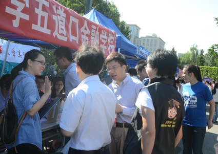 金融学院常务副院长廖理、党委书记兼副院长聂风华、副院长康以同、党委副书记赵岑对2012级新生的到来表示了热烈欢迎,院领导还仔细询问了各项工作的进展情况,并与部分新生及迎新工作人员合影留念。