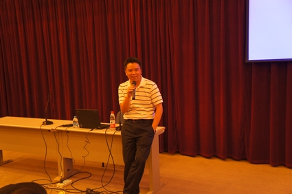 图为汪钦师兄在做主题演讲