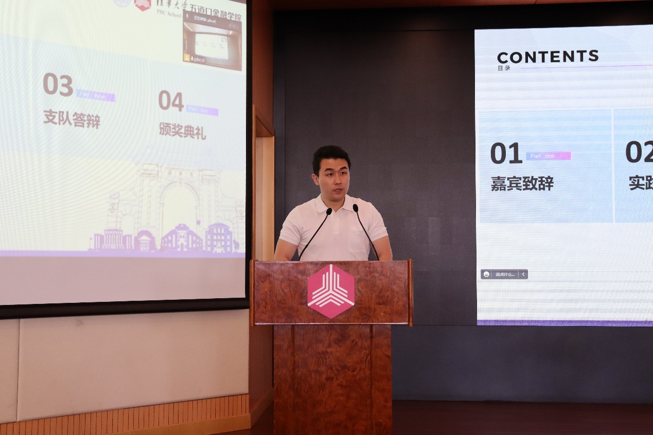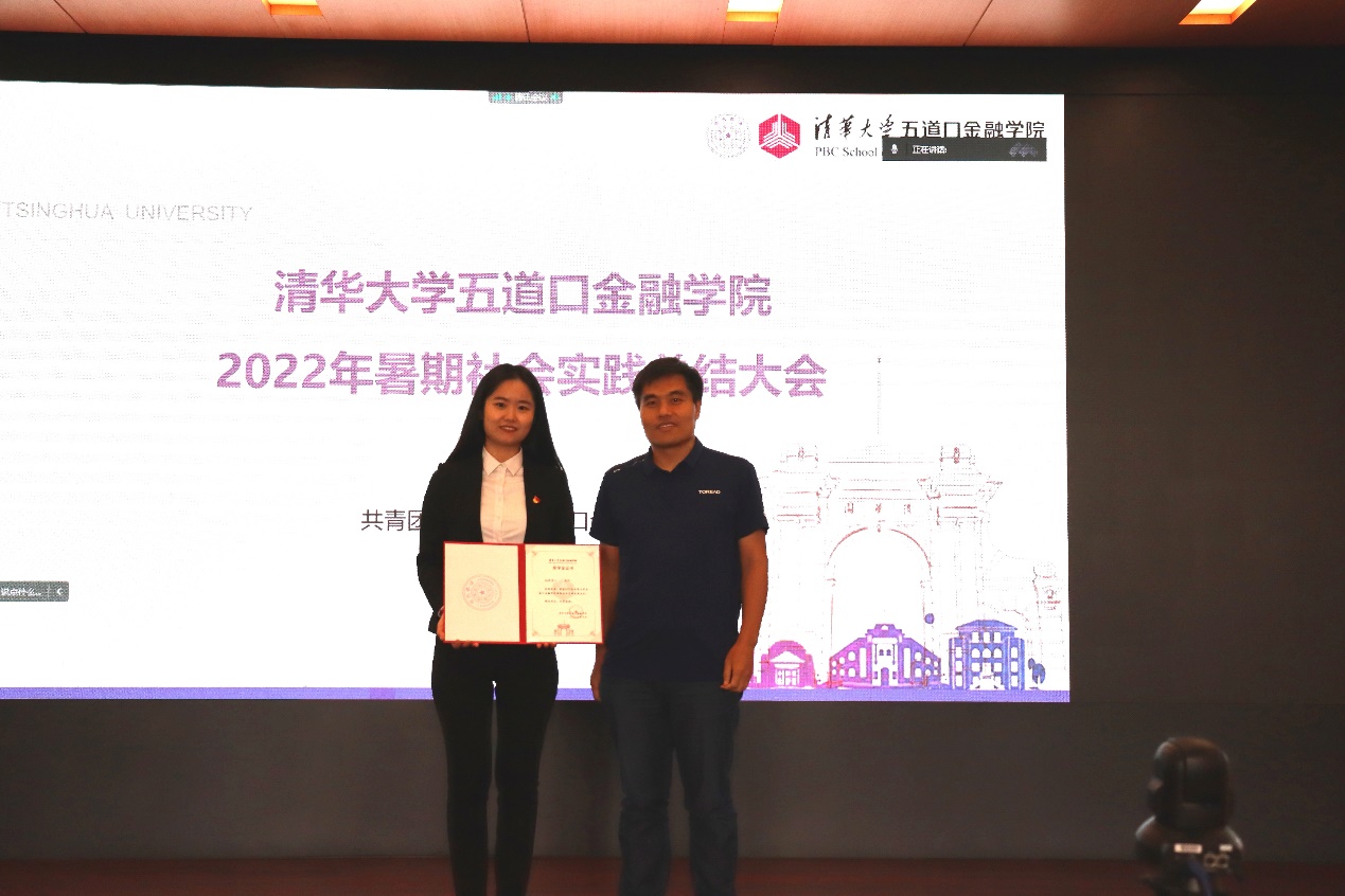 学院研团总支书记宋鑫滟代表学院研团总支汇报了本次暑期社会实践的整体情况。暑期社会实践以“受教育,长才干,做贡献”为指导思想,是五道口金融学院的一项重大实践教育工程。在二十大召开之际,学院将社会实践与理想信念教育融为一体,将培养专业精神和引导就业选择相结合,鼓励学生体悟国家前沿发展、提升理论素养。