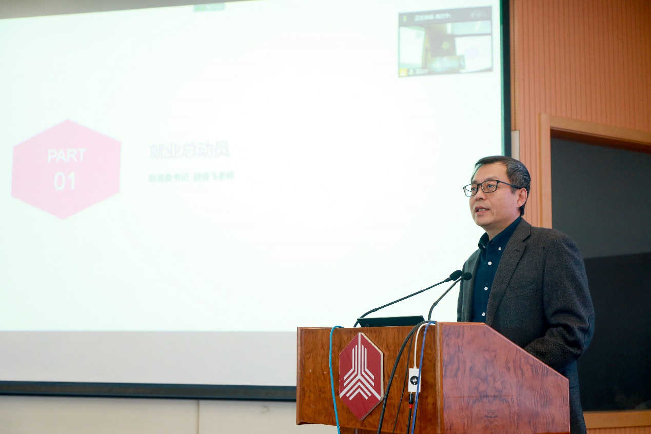 最后,王正位作总结讲话,他提醒同学们高度重视就业工作,在求职过程中紧张但不焦虑,不要因就业而影响身心健康、耽误毕业流程。同时,他也建议同学们充分利用学院的丰富资源,在明确自我认知的情况下做出既适合自己又回馈社会的选择,找到称心如意的工作岗位。