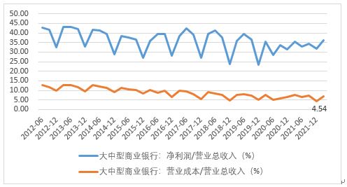 图3 大中型商业银行净利润和营业成本占营业总收入情况