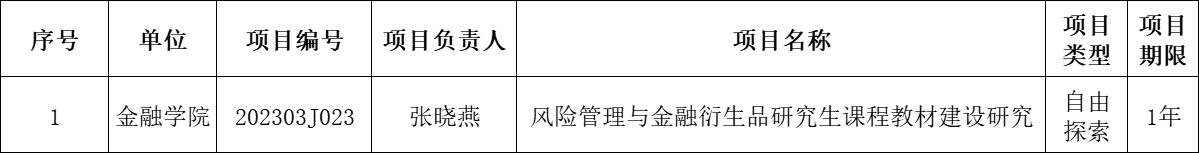 2023年研究生教育教学自由探索类改革项目立项。