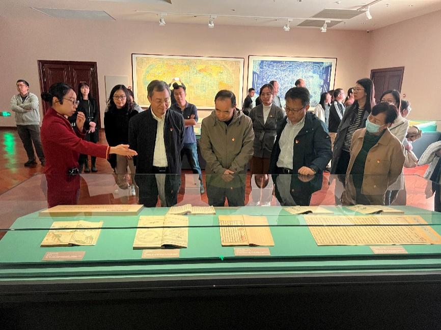 来到版本馆后,大家漫步在恢弘典雅的中央总馆内,倾听着讲解员的精彩讲解。在两个多小时的时间内,一行人参观了文兴楼、文华堂、文瀚阁,观看了“版本工艺”“中国货币”“见证伟业——中华民族复兴版本展”“斯文在兹——中华古代文明版本展”“真理之光——马克思主义中国化时代化经典版本展”等专题展览,被灿烂悠久的中华文明深深折服,切身体会了国家版本馆“赓续历史文脉,谱写当代华章”的重要作用,进一步领悟了“文化兴国运兴,文化强民族强”的精神内涵。