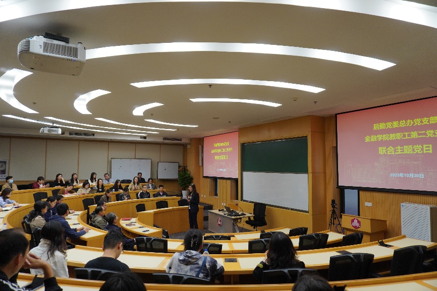 校务委员会副主任、校友总会副会长吉俊民,金融学院党委书记顾良飞,副总务长、总办党支部书记李志华,副总务长郭建丽,以及金融学院教职工第二党支部、总办党支部的党员、积极分子等约40余人参加活动。