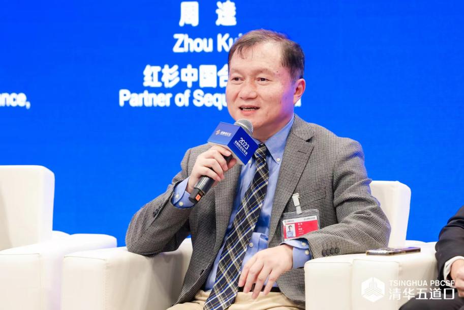 副教授胡杏主持。红杉中国合伙人周逵、Carro创始人陈伟程、第四范式联合创始人胡时伟、海创药业创始人陈元伟、航天宏图联合创始人及总经理廖通逵分别发言,展开讨论。