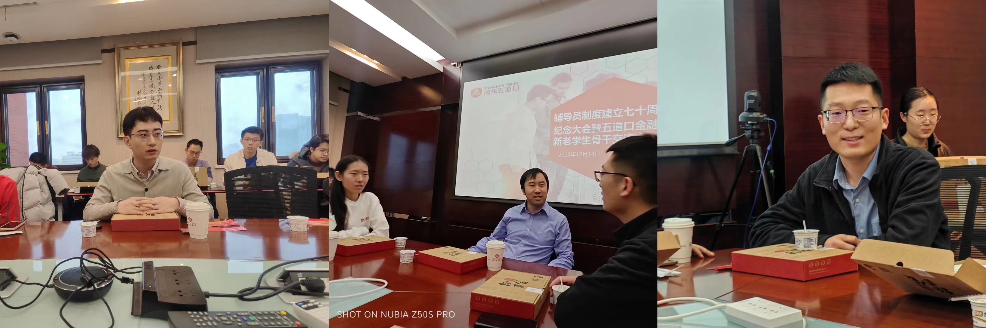 刘悦首先对返校参加纪念大会交流会的辅导员校友表示诚挚欢迎,感谢大家顶风冒雪来到学院与在校骨干交流。七十年来,辅导员制度一直是清华的优良传统;自成立以来,五道口金融学院也一直坚持“双肩挑”,在严格的学术训练和扎实的社工历练中锻炼学生骨干,为国家金融事业发展培养全面发展的时代新人。刘悦代表学院感谢历届辅导员们对学院人才培养工作的付出,相信本次交流定能促进新老骨干间经验传承,为新征程上做好辅导员工作提供助力。