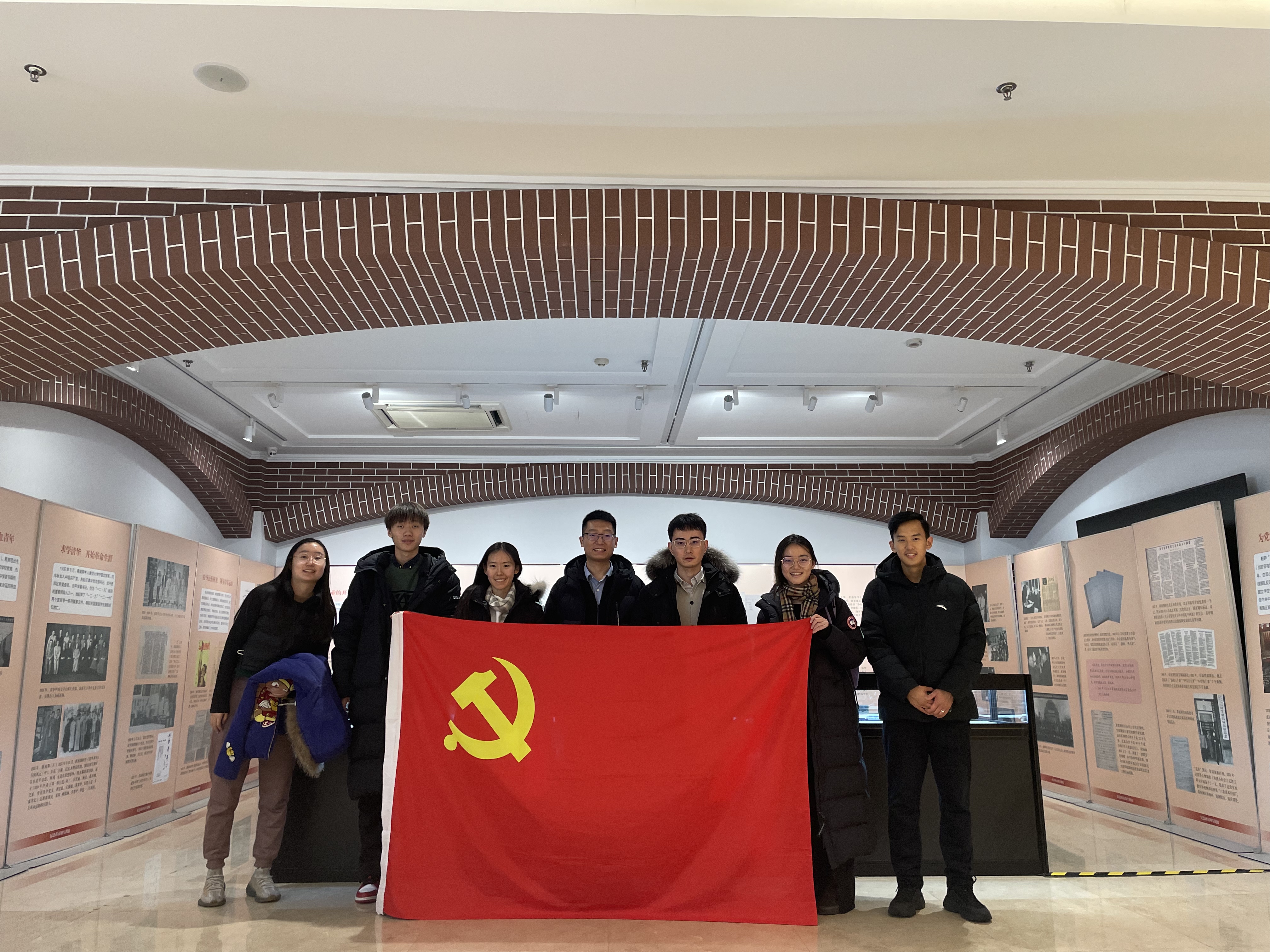 图为新老骨干共同参观蒋南翔校长110周年诞辰纪念展览