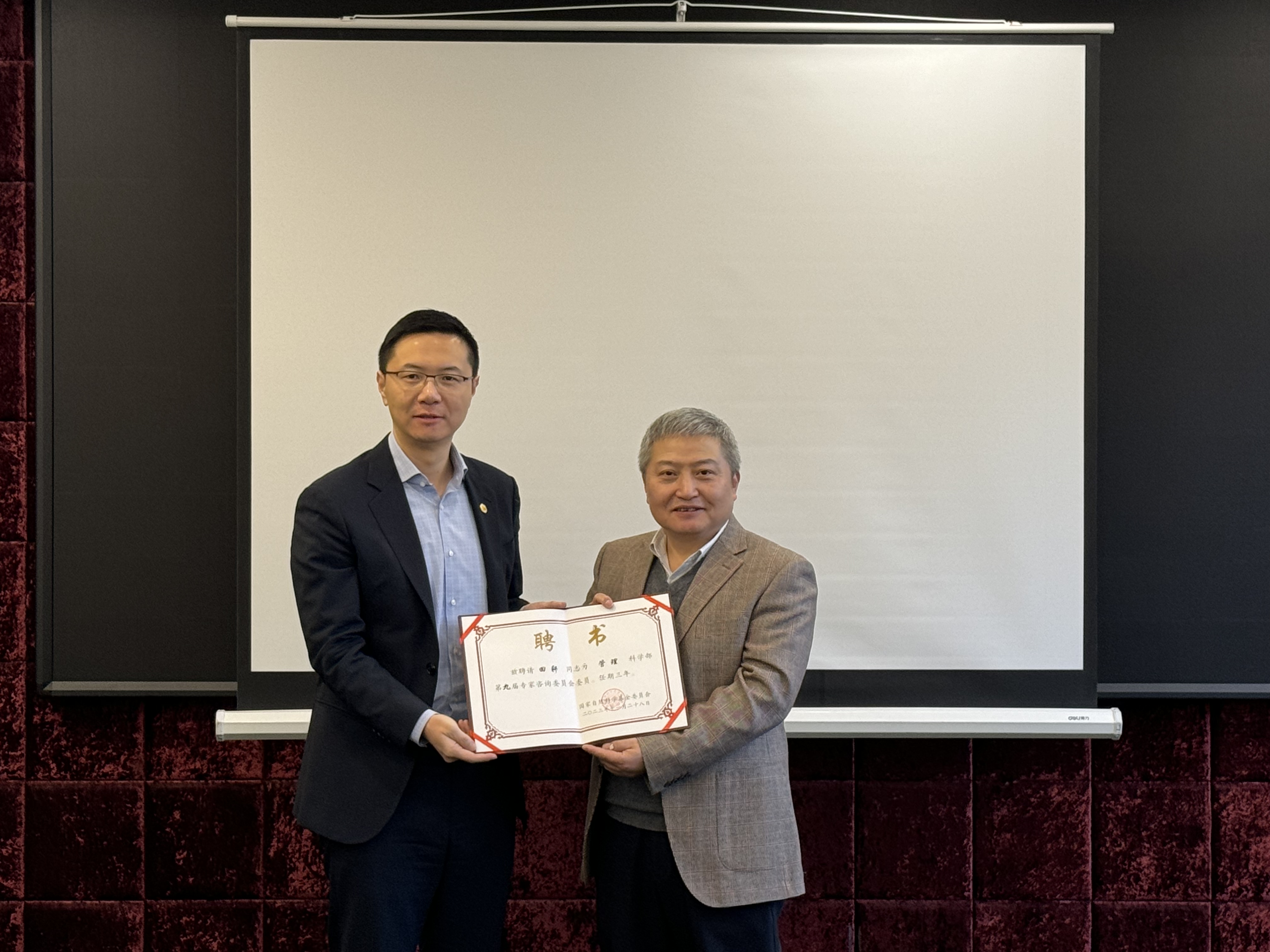 图为国家自然科学基金委副主任江松院士(右)为田轩(左)颁发聘书