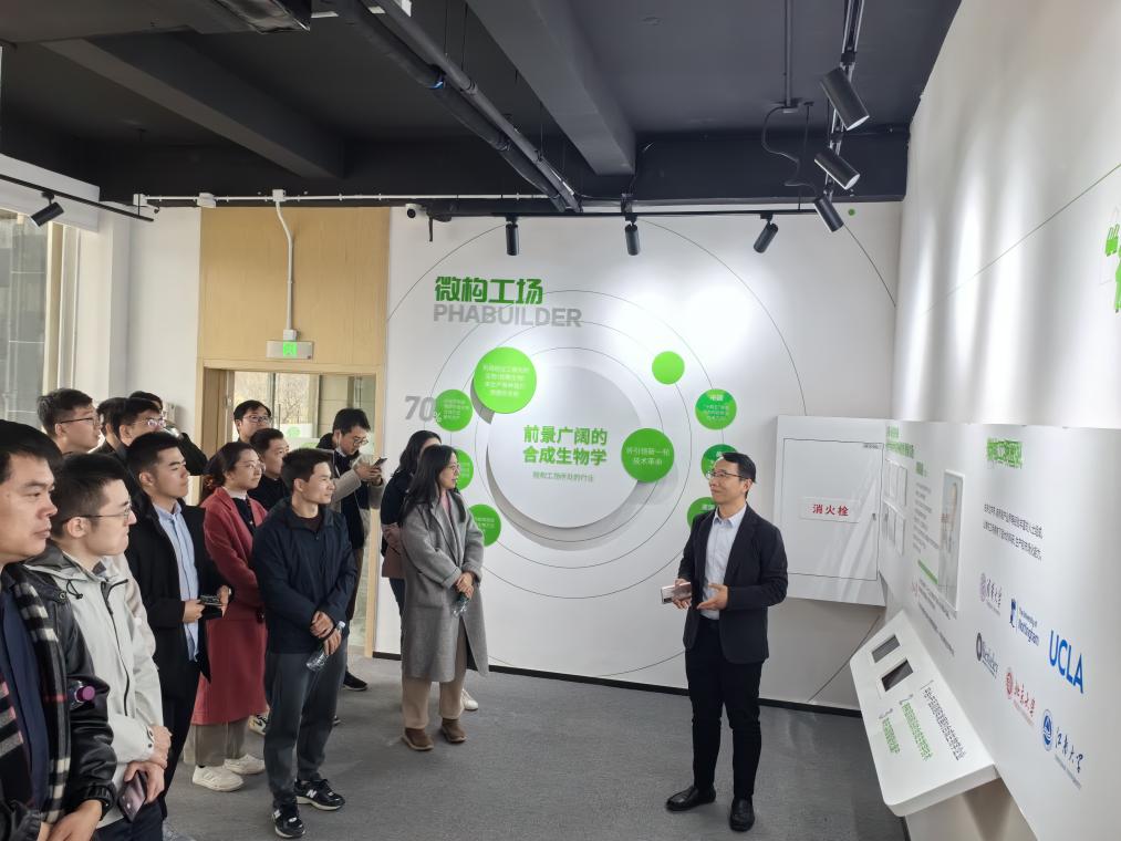 同学们在生产车间的参观过程中看到了一种完全开放、连续的发酵过程,这是微构工场通过核心的“下一代工业生物技术(NGIB)”体系,实现了无灭菌开方式连续发酵,废水重复利用,大幅降低能耗和碳排放。该体系获得了2023年国际代谢工程奖,实现了中国在该奖项上零的突破。