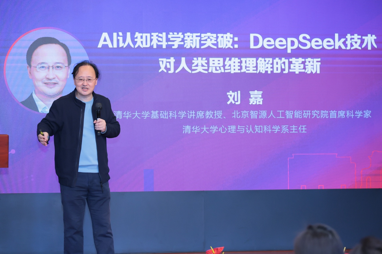 刘嘉教授带来“AI 认知科学新突破:DeepSeek 技术对人类思维理解的革新”主旨演讲,他以通用人工智能(AGI)为核心,介绍了DeepSeek异军突起对全球AI技术竞争格局的重塑,探讨了AI多元发展的重要意义以及AGI在物理和虚拟层面的应用潜力,同时展望AI技术对社会、伦理及人类未来的深远影响。“DeepSeek让我们看到了曙光,”刘嘉说,它展现了中国在AI领域拥有真正的核心竞争力——人才。