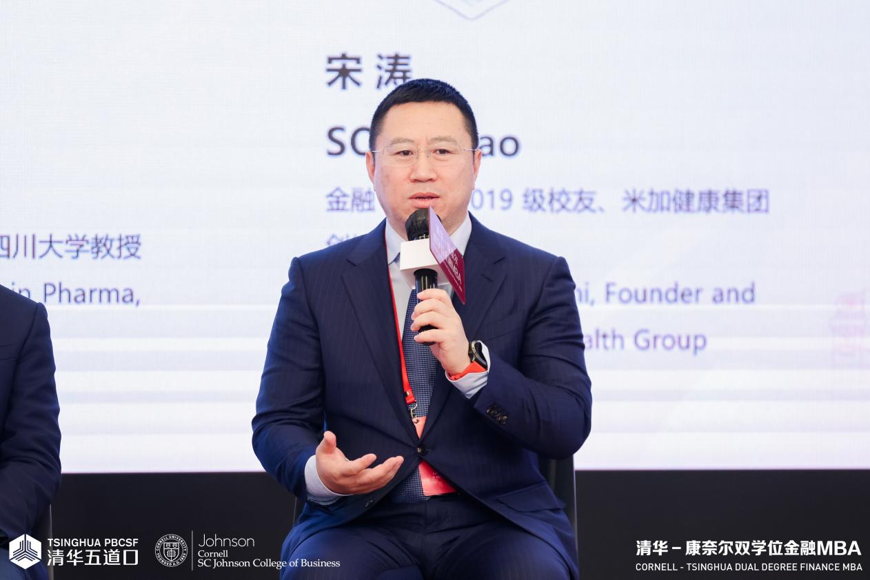 金融EMBA2019级校友、米加健康集团创始人兼董事长宋涛分别发表观点。