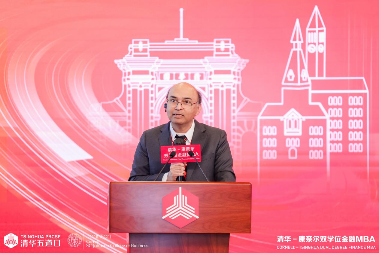 院长焦捷与康奈尔大学约翰逊管理学院院长维夏尔·高尔(Vishal Gaur)联袂登台,分别为论坛献上精彩致辞。