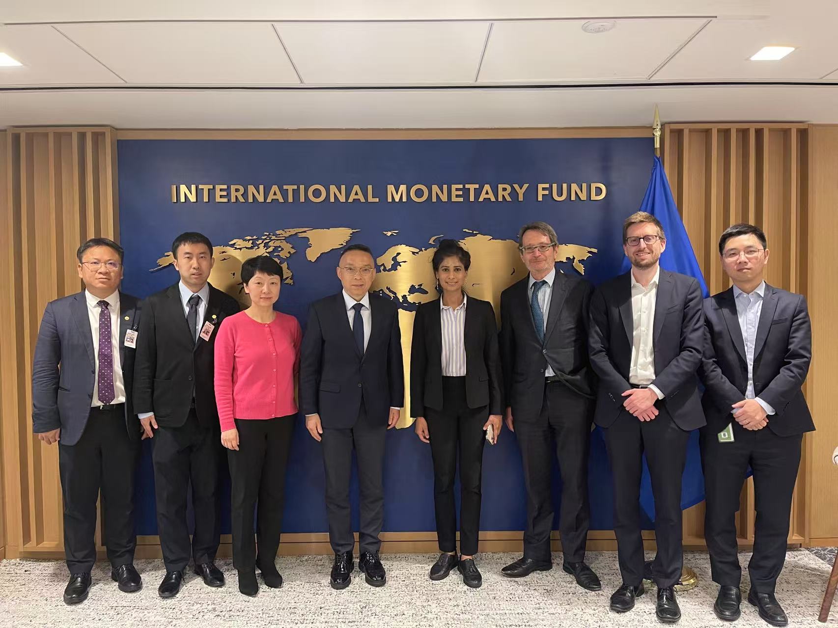 图为代表团拜访国际货币基金组织副总裁李波先生
