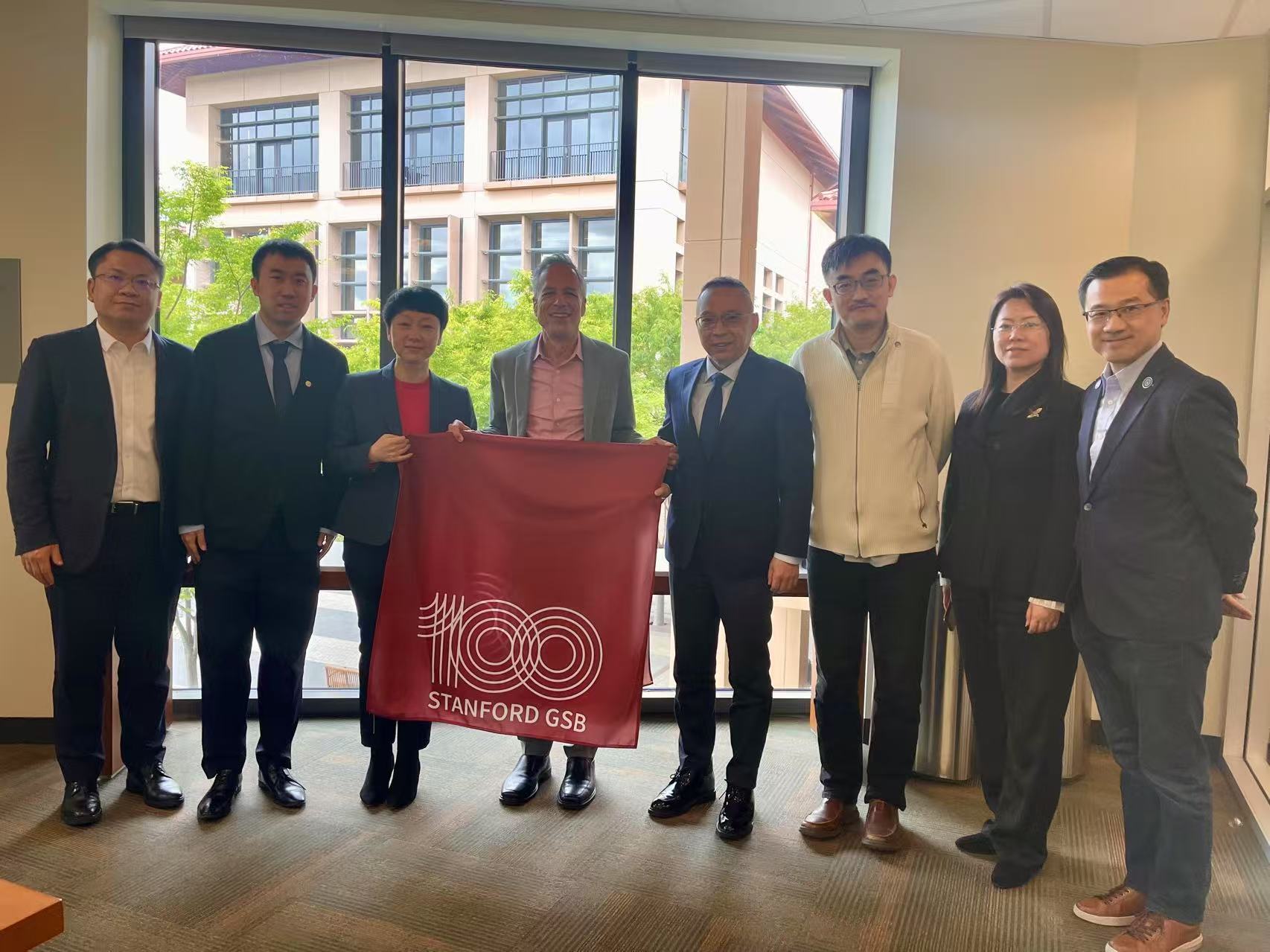 图为代表团拜访斯坦福大学商学院院长彼得·德马佐教授