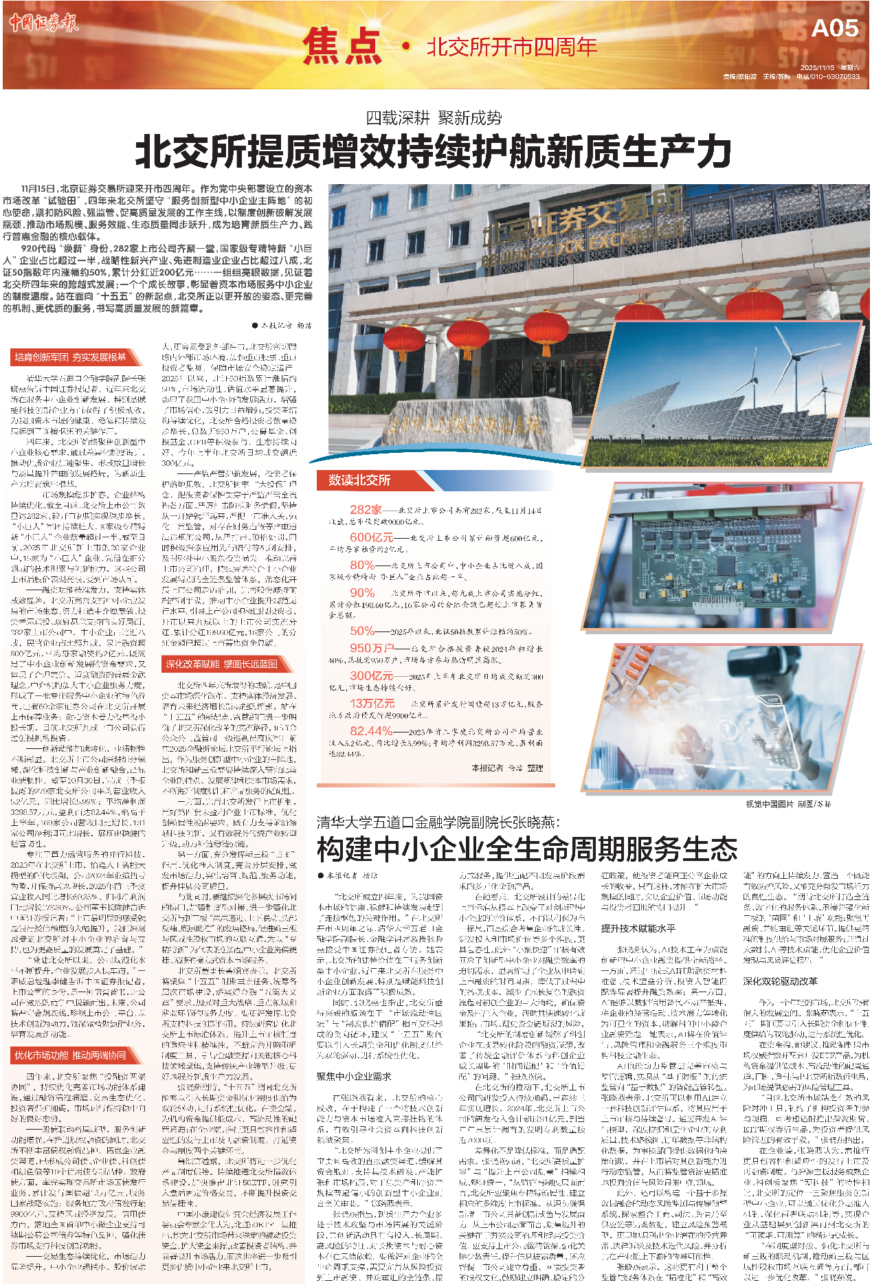 副院长、金融学讲席教授张晓燕自北交所成立之初,便持续关注并研究其发展轨迹,见证了北交所稳步前行的进程。在北交所开市四周年这一时间节点,张晓燕教授接受了《中国证券报》的专访。以下为专访原文。
