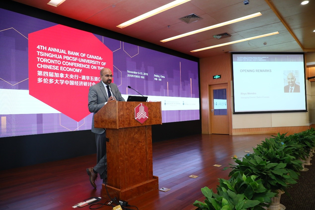 国家金融研究院院长、原国际货币基金组织副总裁朱民,加拿大银行国际经济分析司司长里斯·曼德斯(Rhys Mendes)分别发表开幕致辞,表达了对所有参会人员的热烈欢迎,以及对研讨会成功举办的期待。