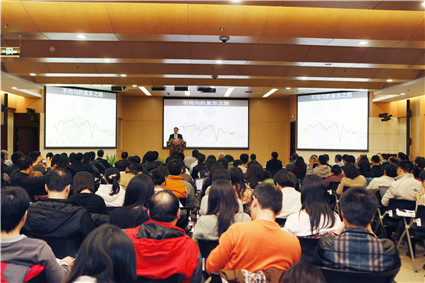 五道口金融学院在读研究生以及国内银行、基金、投资公司、部分主流财经媒体记者等近200人聆听了讲座。