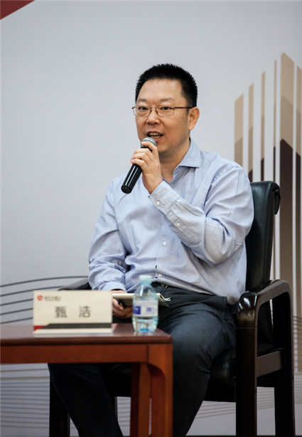 甄浩在现场分享了探路者利用内生式和外延式发展以实现公司产融结合的经验。