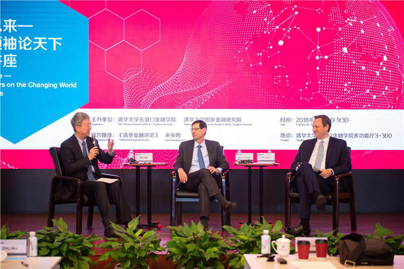 国家金融研究院院长、IMF前副总裁朱民的邀请,国际货币基金组织(IMF)首席经济学家莫里斯 ?奥伯斯费尔德(Maurice Obstfeld)与IMF金融顾问兼货币和资本市场部主任托拜厄斯? 艾德里安(Tobias Adrian)分别对全球经济与金融作出展望。