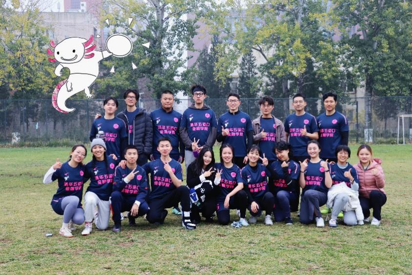 在金融学院飞盘队,我收获了太多的快乐与感动。每周日下午雷打不动的训练以及紫荆二楼的长条桌聚餐,让飞盘队成为了一个温暖的大家庭,见证着成立两年来每一位成员的成长。大家在聚餐时各自分享喜怒哀乐,但不变的是每次都在欢声笑语中等待开启全新的一周。小院篮球场的扔盘“大课间”,更是成了我每天最期待的活动。而飞盘场上,大家则一改平日的嘻嘻哈哈,全情投入比赛,从小组赛最后一秒绝平跌跌撞撞出线,到最终获得马杯乙组季军,飞盘队的“团魂”带领大家一路前行。